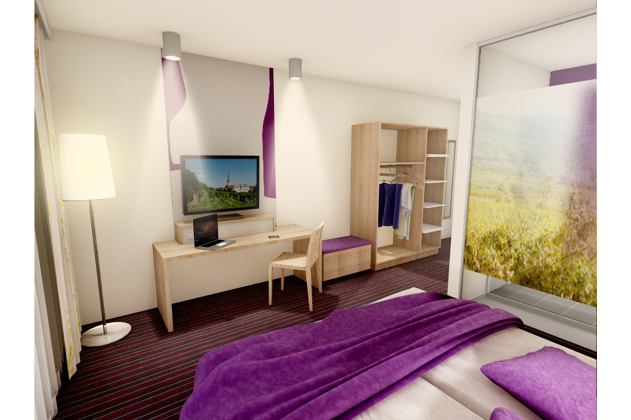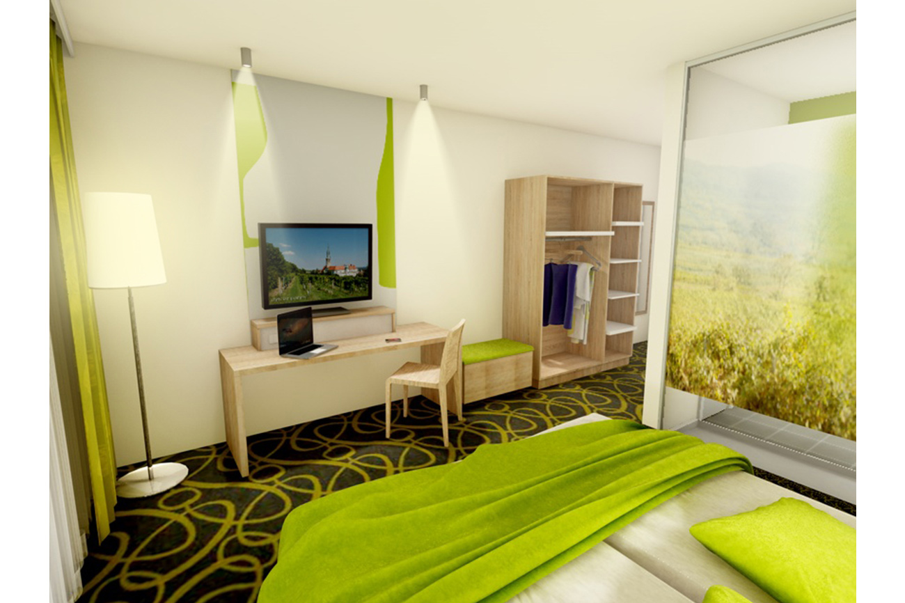 Seit vier Generationen ist der familiengeführte Gasthof ein Genießer-Treffpunkt in der Thermenregion. Die frische Farbwelt aus Grün, Aubergine und Beige schafft eine gemütliche Atmosphäre. Passend zur Region zieht sich das Thema Wein nicht nur farblich durch das ganze Konzept: Von der Wandgestaltung bis hin zum Ausblick auf die Weinberge, Weinerlebnis auf der ganzen Linie! Eine Kombination aus Lärchenholz und einem warmen Gelbton hüllen die Zimmer im Hotel Keller ein. Die Fassade erstrahlt in frischen Farben, ein dunkelgrauer Streifen setzt einen Akzent zur Gliederung der Fassade. Ein besonderer Eyecatcher ist eine halbtransparente Wand im Badezimmer. Sie erlaubt einen Blick vom Bad ins restliche Zimmer. Die fließenden Übergängen lassen großzügige Räume entstehen, Platz zum Durchatmen und Genießen!